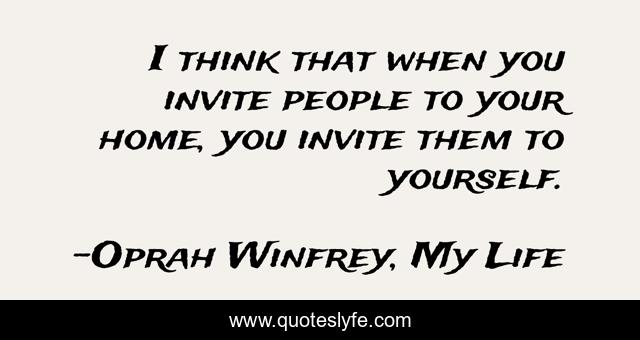 This page presents the quote "I think that when you invite people to your home, you invite them to yourself.". Author of this quote is Oprah Winfrey, My Life. .