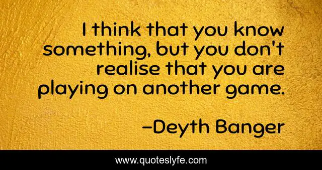This page presents the quote "I think that you know something, but you don't realise that you are playing on another game.". Author of this quote is Deyth Banger. This quote is about don-t, game, think, something,.