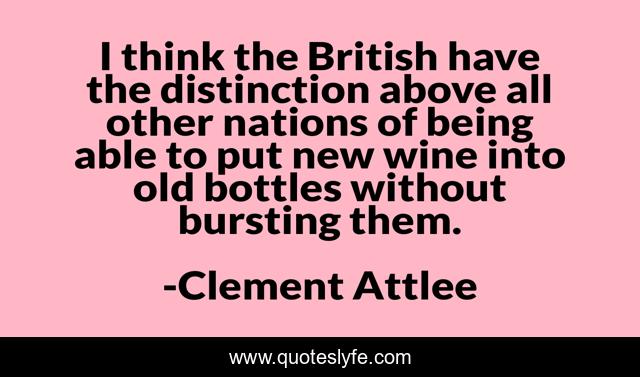 This page presents the quote "I think the British have the distinction above all other nations of being able to put new wine into old bottles without bursting them.". Author of this quote is Clement Attlee. This quote is about , england, k, u,.