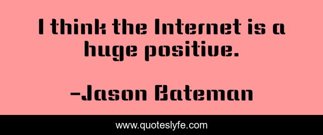 This page presents the quote "I think the Internet is a huge positive.". Author of this quote is Jason Bateman. This quote is about i think, think, internet,.