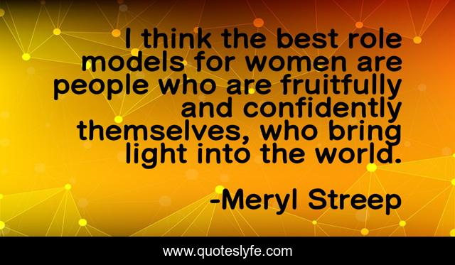 This page presents the quote "I think the best role models for women are people who are fruitfully and confidently themselves, who bring light into the world.". Author of this quote is Meryl Streep. This quote is about confidence, role-models, women,.