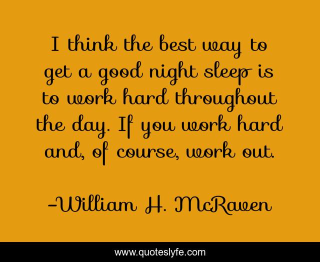This page presents the quote "I think the best way to get a good night sleep is to work hard throughout the day. If you work hard and, of course, work out.". Author of this quote is William H. McRaven. This quote is about good, sleep, best,.