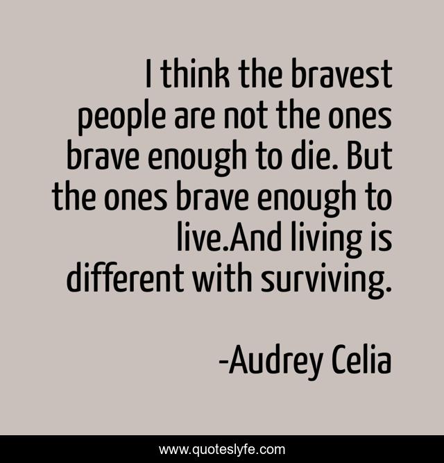 This page presents the quote "I think the bravest people are not the ones brave enough to die. But the ones brave enough to live.And living is different with surviving.". Author of this quote is Audrey Celia. This quote is about life, death, people, survival, live, inspirational, enthusiasm, bravery,.
