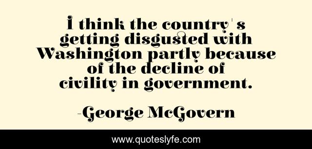 This page presents the quote "I think the country's getting disgusted with Washington partly because of the decline of civility in government.". Author of this quote is George McGovern. This quote is about country, washington, think,.