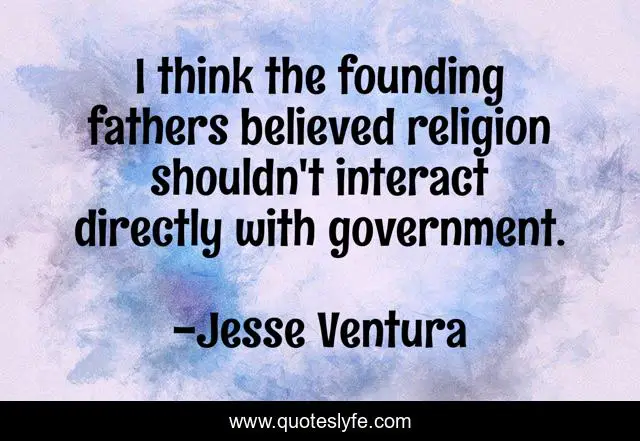 This page presents the quote "I think the founding fathers believed religion shouldn't interact directly with government.". Author of this quote is Jesse Ventura. This quote is about i think, think, government,.