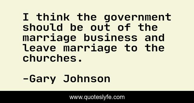 This page presents the quote "I think the government should be out of the marriage business and leave marriage to the churches.". Author of this quote is Gary Johnson. This quote is about think, business, government,.