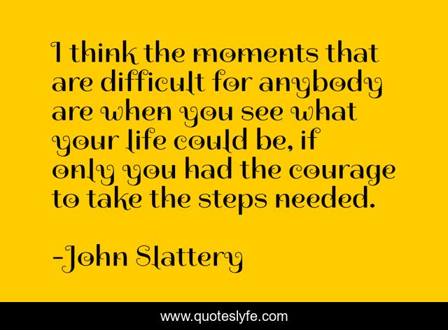 This page presents the quote "I think the moments that are difficult for anybody are when you see what your life could be, if only you had the courage to take the steps needed.". Author of this quote is John Slattery. This quote is about moments, life, think,.