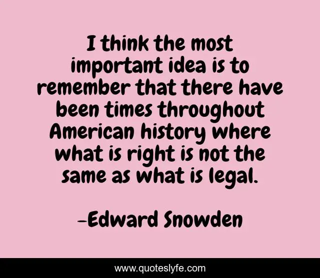 This page presents the quote "I think the most important idea is to remember that there have been times throughout American history where what is right is not the same as what is legal.". Author of this quote is Edward Snowden. This quote is about american, remember, history,.