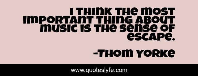 This page presents the quote "I think the most important thing about music is the sense of escape.". Author of this quote is Thom Yorke. This quote is about important, think, escape,.