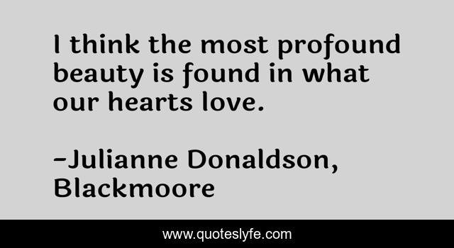 This page presents the quote "I think the most profound beauty is found in what our hearts love.". Author of this quote is Julianne Donaldson, Blackmoore. This quote is about blackmoore, henry-delafield, love, beauty, affection,.