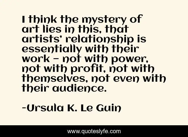 "Ursula K. Le Guin Quotes." Quoteslyfe.com, 2025. Sat. 06 Dec. 2025. <https://www.quoteslyfe.com/quote/I-think-the-mystery-of-art-lies-27517>.