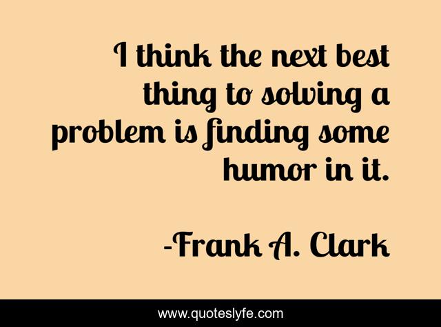 This page presents the quote "I think the next best thing to solving a problem is finding some humor in it.". Author of this quote is Frank A. Clark. This quote is about problem, think, best,.