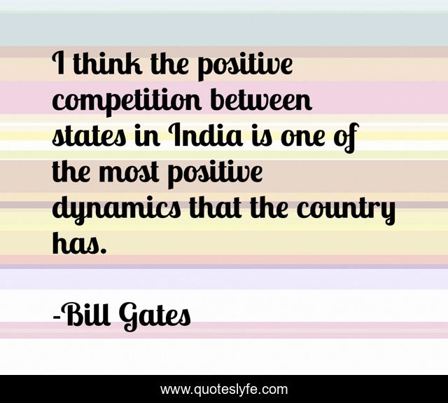 This page presents the quote "I think the positive competition between states in India is one of the most positive dynamics that the country has.". Author of this quote is Bill Gates. This quote is about country, think, competition,.
