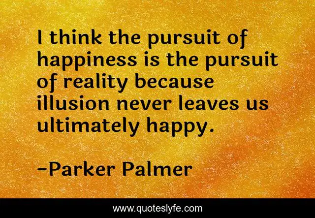 This page presents the quote "I think the pursuit of happiness is the pursuit of reality because illusion never leaves us ultimately happy.". Author of this quote is Parker Palmer. This quote is about happy, think, reality,.