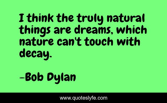This page presents the quote "I think the truly natural things are dreams, which nature can't touch with decay.". Author of this quote is Bob Dylan. .