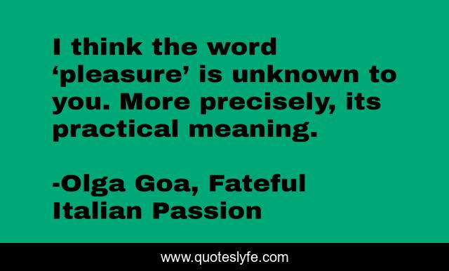 "Olga Goa, Fateful Italian Passion Quotes." Quoteslyfe.com, 2025. Sun. 07 Dec. 2025. <https://www.quoteslyfe.com/quote/I-think-the-word-pleasure-is-unknown-22811>.
