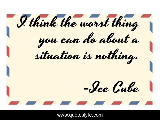 This page presents the quote "I think the worst thing you can do about a situation is nothing.". Author of this quote is Ice Cube. This quote is about enthusiasm, motivation, inspirational, reality,.