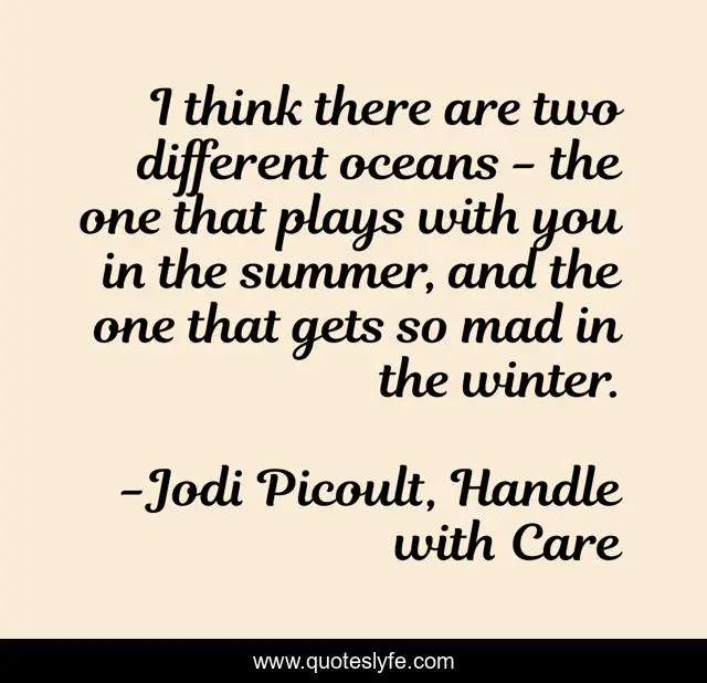 This page presents the quote "I think there are two different oceans - the one that plays with you in the summer, and the one that gets so mad in the winter.". Author of this quote is Jodi Picoult, Handle with Care. This quote is about betrayal, two-faced-people,.