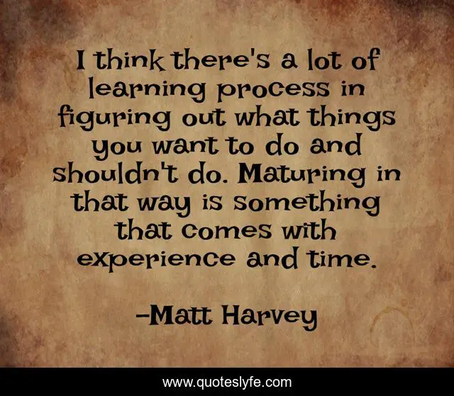 This page presents the quote "I think there's a lot of learning process in figuring out what things you want to do and shouldn't do. Maturing in that way is something that comes with experience and time.". Author of this quote is Matt Harvey. This quote is about experience, time,.