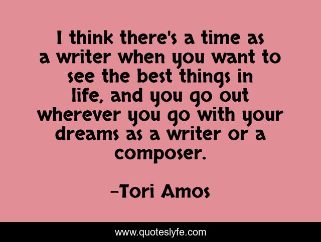 This page presents the quote "I think there's a time as a writer when you want to see the best things in life, and you go out wherever you go with your dreams as a writer or a composer.". Author of this quote is Tori Amos. This quote is about life, best, time,.