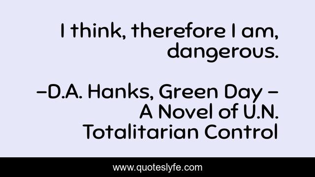 "D.A. Hanks, Green Day - A Novel of U.N. Totalitarian Control Quotes." Quoteslyfe.com, 2025. Sat. 06 Dec. 2025. <https://www.quoteslyfe.com/quote/I-think-therefore-I-am-dangerous-232757>.