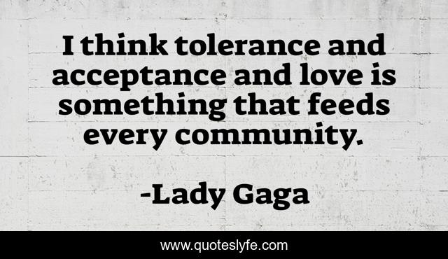 This page presents the quote "I think tolerance and acceptance and love is something that feeds every community.". Author of this quote is Lady Gaga. This quote is about community, love is,.