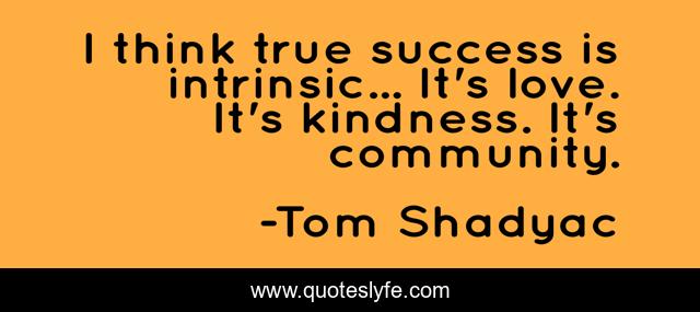 This page presents the quote "I think true success is intrinsic... It's love. It's kindness. It's community.". Author of this quote is Tom Shadyac. This quote is about kindness, love, community, affection,.