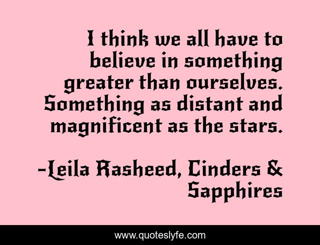 "Leila Rasheed, Cinders & Sapphires Quotes." Quoteslyfe.com, 2025. Fri. 05 Dec. 2025. <https://www.quoteslyfe.com/quote/I-think-we-all-have-to-believe-111147>.