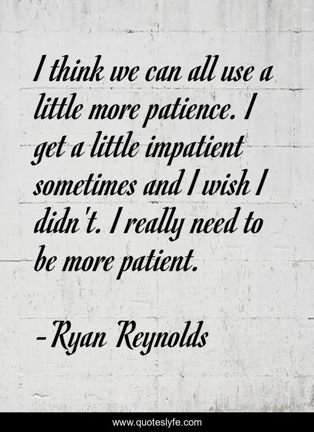 This page presents the quote "I think we can all use a little more patience. I get a little impatient sometimes and I wish I didn't. I really need to be more patient.". Author of this quote is Ryan Reynolds. This quote is about wish, patient, think,.