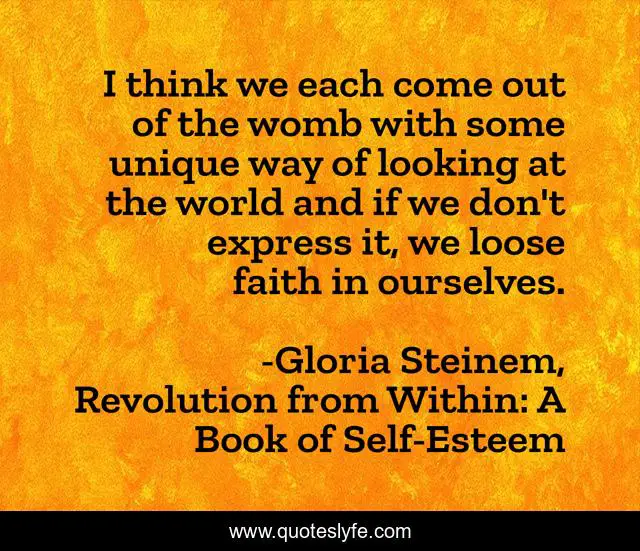 "Gloria Steinem, Revolution from Within: A Book of Self-Esteem Quotes." Quoteslyfe.com, 2025. Fri. 05 Dec. 2025. <https://www.quoteslyfe.com/quote/I-think-we-each-come-out-of-55005>.