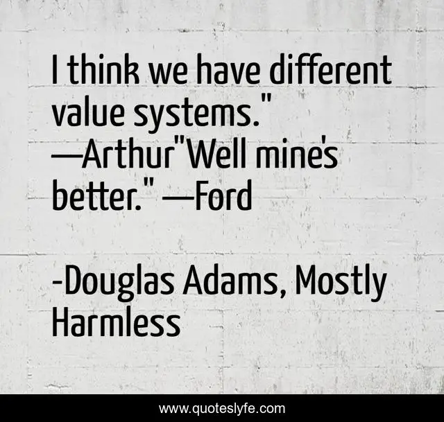 "Douglas Adams, Mostly Harmless Quotes." Quoteslyfe.com, 2025. Sat. 06 Dec. 2025. <https://www.quoteslyfe.com/quote/I-think-we-have-different-value-systems-41887>.