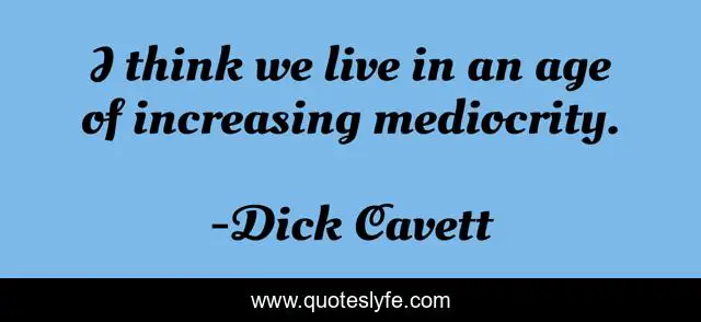 This page presents the quote "I think we live in an age of increasing mediocrity.". Author of this quote is Dick Cavett. This quote is about mediocrity, live, think,.
