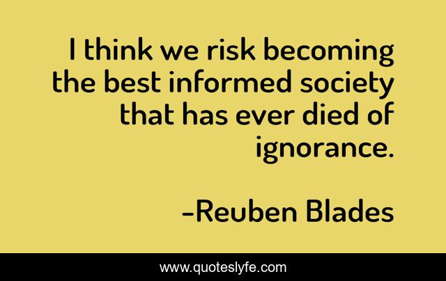 This page presents the quote "I think we risk becoming the best informed society that has ever died of ignorance.". Author of this quote is Reuben Blades. This quote is about society, ignorance,.