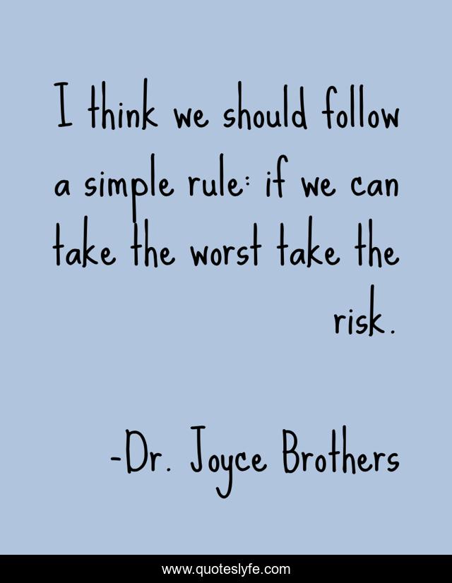 This page presents the quote "I think we should follow a simple rule: if we can take the worst take the risk.". Author of this quote is Dr. Joyce Brothers. .