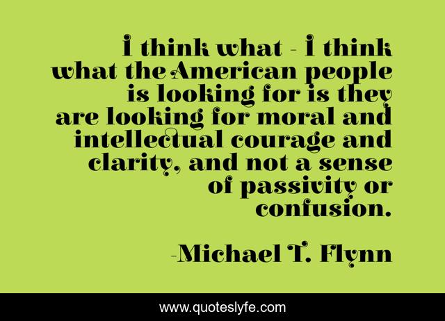 This page presents the quote "I think what - I think what the American people is looking for is they are looking for moral and intellectual courage and clarity, and not a sense of passivity or confusion.". Author of this quote is Michael T. Flynn. This quote is about looking, american, people,.