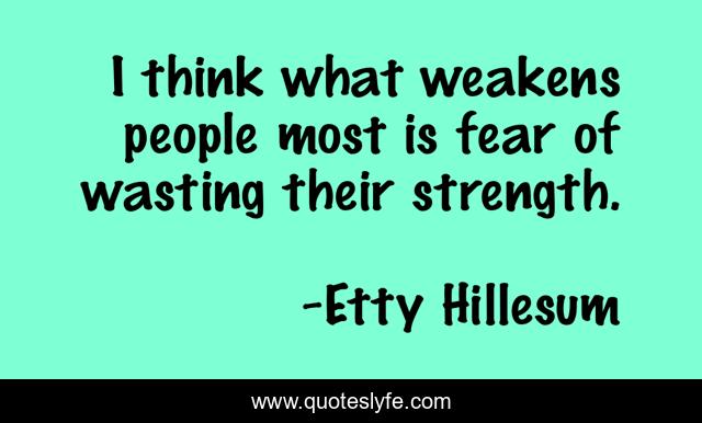 This page presents the quote "I think what weakens people most is fear of wasting their strength.". Author of this quote is Etty Hillesum. This quote is about strength, think, people,.