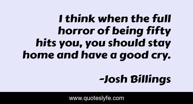 This page presents the quote "I think when the full horror of being fifty hits you, you should stay home and have a good cry.". Author of this quote is Josh Billings. This quote is about home, good, think,.