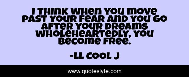This page presents the quote "I think when you move past your fear and you go after your dreams wholeheartedly, you become free.". Author of this quote is LL Cool J. This quote is about your dreams, past, fear,.