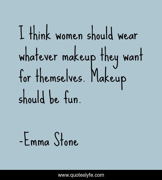 This page presents the quote "I think women should wear whatever makeup they want for themselves. Makeup should be fun.". Author of this quote is Emma Stone. This quote is about fun, makeup,.