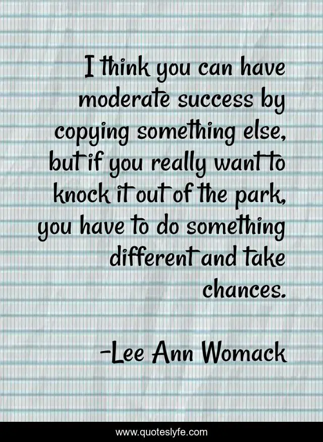 This page presents the quote "I think you can have moderate success by copying something else, but if you really want to knock it out of the park, you have to do something different and take chances.". Author of this quote is Lee Ann Womack. .