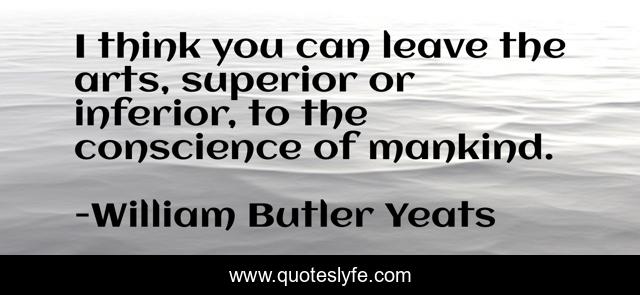 This page presents the quote "I think you can leave the arts, superior or inferior, to the conscience of mankind.". Author of this quote is William Butler Yeats. This quote is about conscience, think,.