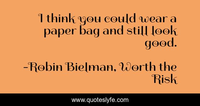 This page presents the quote "I think you could wear a paper bag and still look good.". Author of this quote is Robin Bielman, Worth the Risk. This quote is about romance, contemporary-romance,.