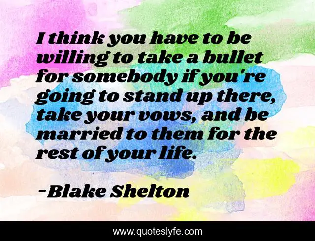 This page presents the quote "I think you have to be willing to take a bullet for somebody if you're going to stand up there, take your vows, and be married to them for the rest of your life.". Author of this quote is Blake Shelton. This quote is about life, think, stand up,.