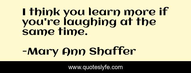 This page presents the quote "I think you learn more if you're laughing at the same time.". Author of this quote is Mary Ann Shaffer. This quote is about education, humor,.