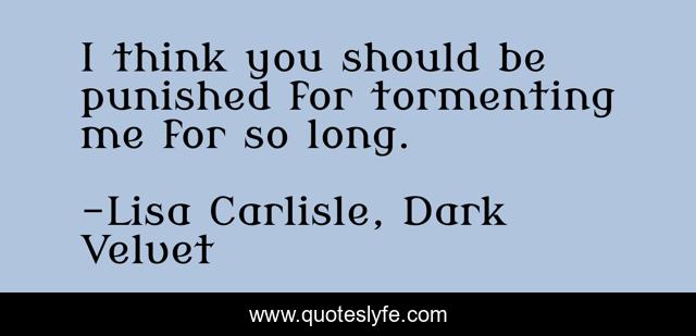 This page presents the quote "I think you should be punished for tormenting me for so long.". Author of this quote is Lisa Carlisle, Dark Velvet. This quote is about gargoyle-romance, paranormal-urban-fantasy-romance, erotic-romance, vampire-romance,.