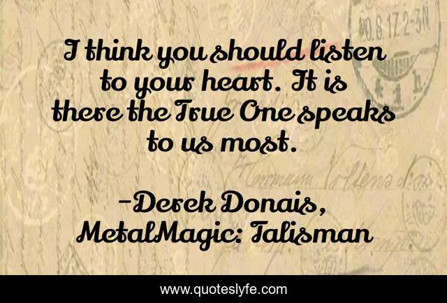 "Derek Donais, MetalMagic: Talisman Quotes." Quoteslyfe.com, 2025. Fri. 05 Dec. 2025. <https://www.quoteslyfe.com/quote/I-think-you-should-listen-to-your-80690>.