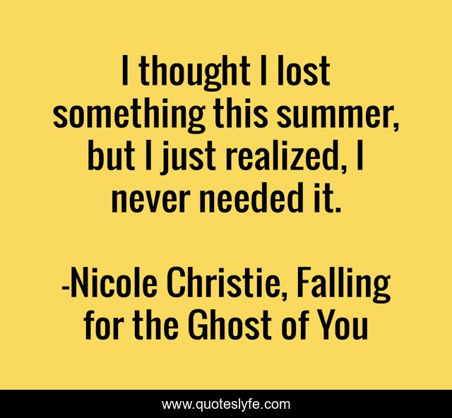 This page presents the quote "I thought I lost something this summer, but I just realized, I never needed it.". Author of this quote is Nicole Christie, Falling for the Ghost of You. This quote is about breaking-up, breakup, lost, lost-love, never-needed,.