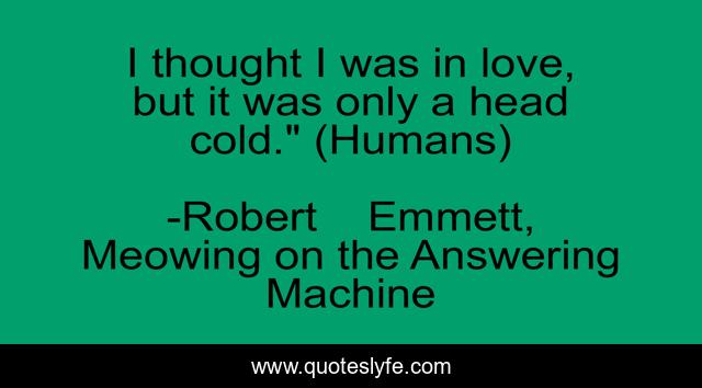 This page presents the quote "I thought I was in love, but it was only a head cold." (Humans)". Author of this quote is Robert Emmett, Meowing on the Answering Machine. This quote is about short, humor, fiction, robert-emmett, love, meowing, affection,.