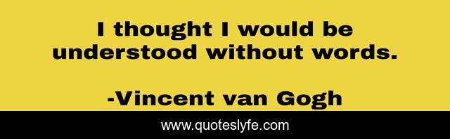 This page presents the quote "I thought I would be understood without words.". Author of this quote is Vincent van Gogh. .