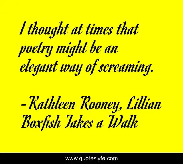 This page presents the quote "I thought at times that poetry might be an elegant way of screaming.". Author of this quote is Kathleen Rooney, Lillian Boxfish Takes a Walk. This quote is about anger, feeling, expression, poetry,.